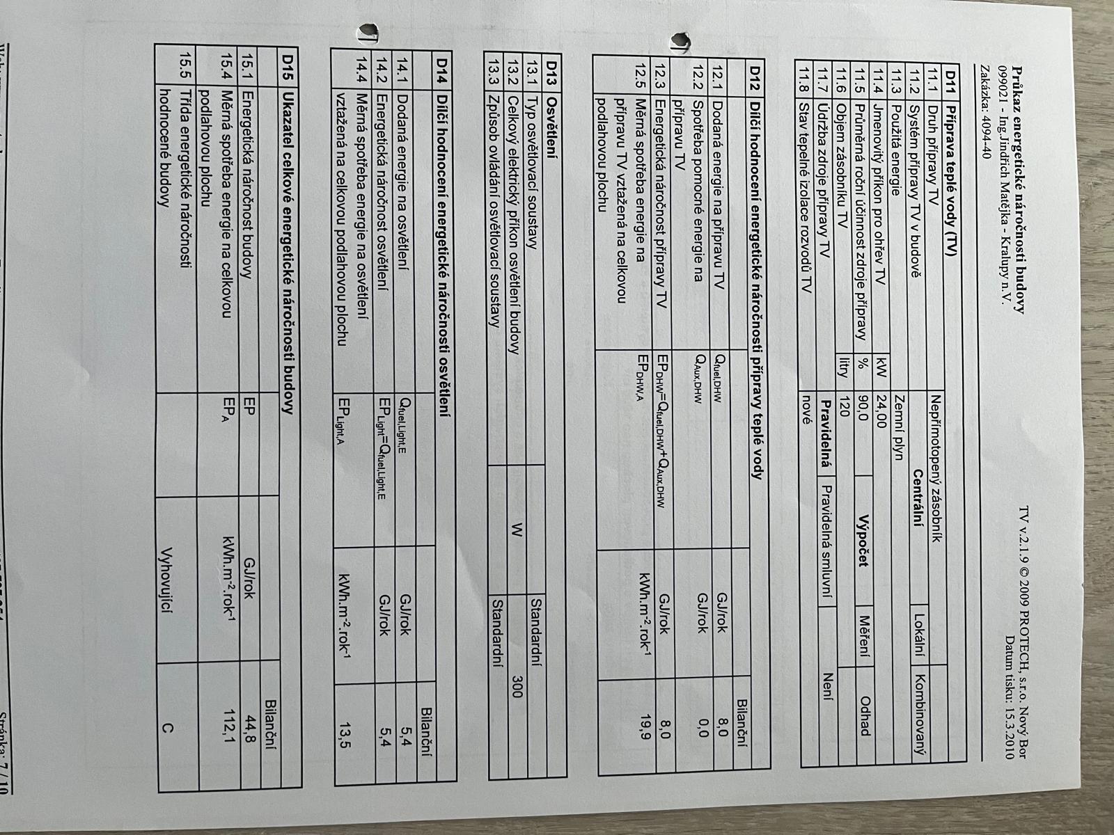 Energetický průkaz budovy: původní třída C, aktuálně se zpracovává nový průkaz.